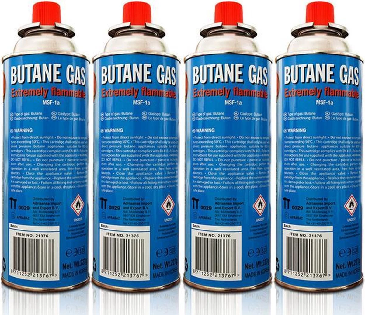 | Verpakkingsinhoud | 4 flessen met butaangas |