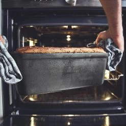 Onze broodpan is gemaakt van massief gietijzer. Dit materiaal houdt warmte goed vast en verdeelt deze gelijkmatig over de vorm, waardoor brood er met een mooie knapperige korst uitkomt en vlees perfect gaar wordt.