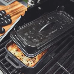 Broodvorm, cakevorm of ovenschaal: onze gietijzeren broodpan kan de meest uiteenlopende functies vervullen. Met het bijgeleverde inzetstuk kan je ook langzaam kip, braadstukken en ribbetjes garen zonder dat je eten de bodem van de pan raakt. Je kunt altijd genieten van de ongelofelijke veelzijdigheid van dit bakblik, of het nu op de grill, in de oven of rond het kampvuur is.