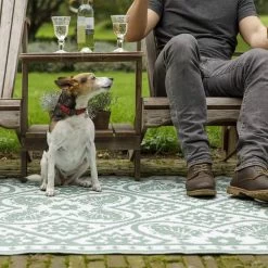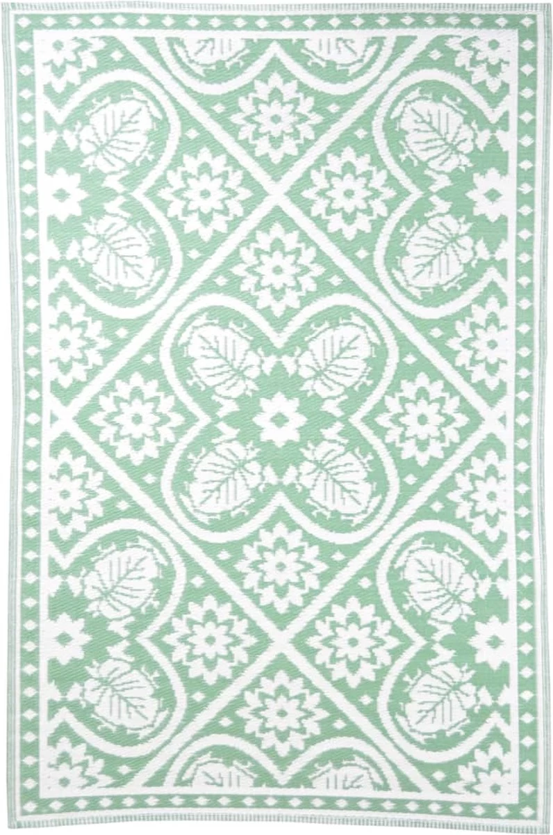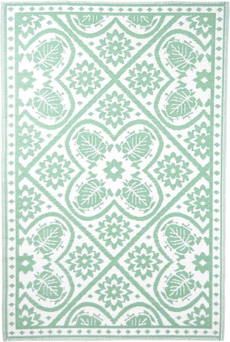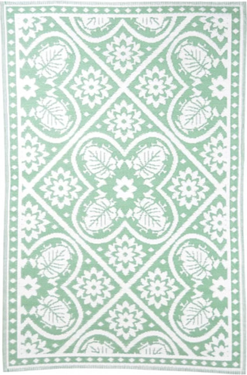 Bovendien is dit buitenkleed dubbelzijdig geweven. Zo kun je gemakkelijk van kant wisselen voor een iets andere print en is het kleed eigenlijk 2 kleden in één!
