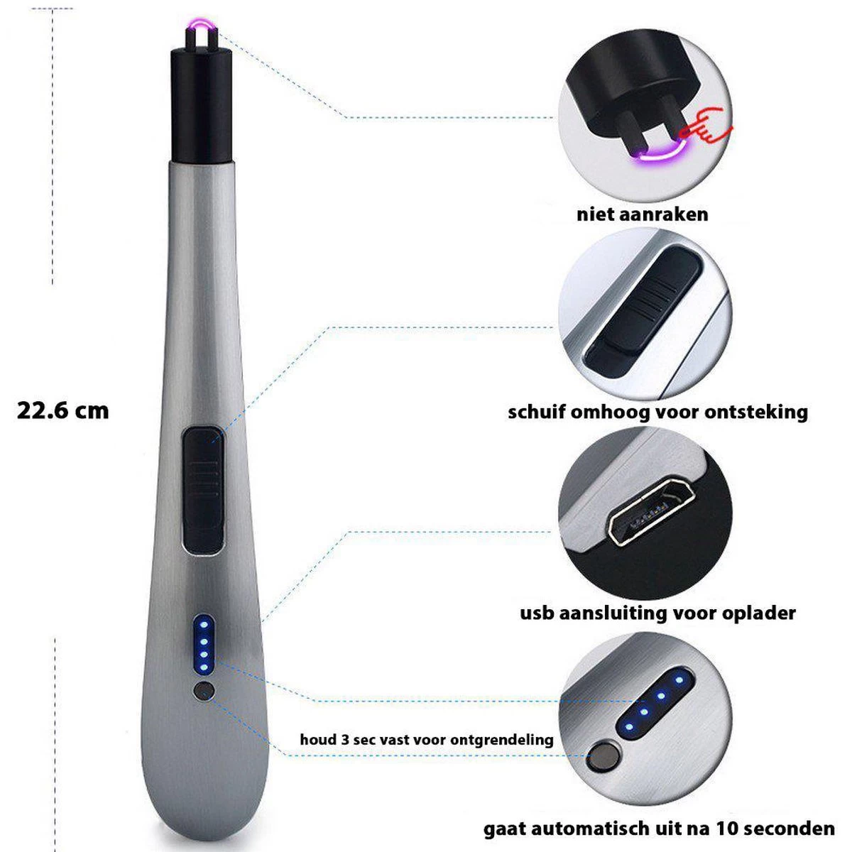 ✓ Kinderslot & automatische vergrendeling – Kinderen en aanstekers is een spannende combinatie. Slimme vergrendeling voorkomt verbrande vingers: maak de aansteker klaar voor gebruik door 3 seconden de ontgrendelknop ingedrukt te houden. Na 10 seconden vergrendelt hij automatisch!