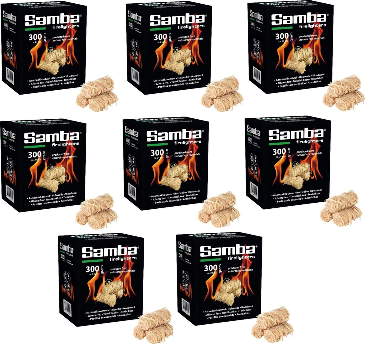 Een barbecue gaat niet zomaar aan. Maar door deze houtwol is dat probleem zo opgelost! aanmaakkrullen, -wokkels, -houtwol voor het aanmaken van je pizzaoven, BBQ of openhaard. Plaats de aanmaakwokkel(s) tussen het hout of houtskool en steek aan. De bruine houtwol van samba worden in hoog tempo steeds populairder. Dat komt omdat ze erg makkelijk zijn in het gebruik, niet stinken, onbeperkt houdbaar zijn maar bovenal erg veilig zijn. In tegenstelling tot aanmaakvloeistof blijft na het aansteken de vuurbron geconcentreerd. Bovendien kan het houtwol met een tang worden weggenomen als het even mis gaat. Bij de houtwol heb je geen explosiegevaar. Deze aansteker is een ecologisch product, geproduceerd met houtkrullen, ondergedompeld in een plantaardige was. Hierdoor zijn ze niet giftig en zijn dus zeer geschikt voor het aansteken van de BBQ.